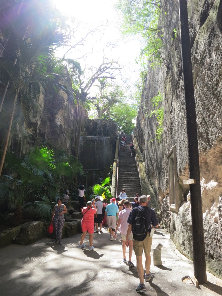 Our walk around town shopping was enjoyable, although warm when out of the breeze. We hiked our way up to the 66 steps, which my husband counted twice at 65 steps. When I checked Nassau’s tourism website I found the explanation: