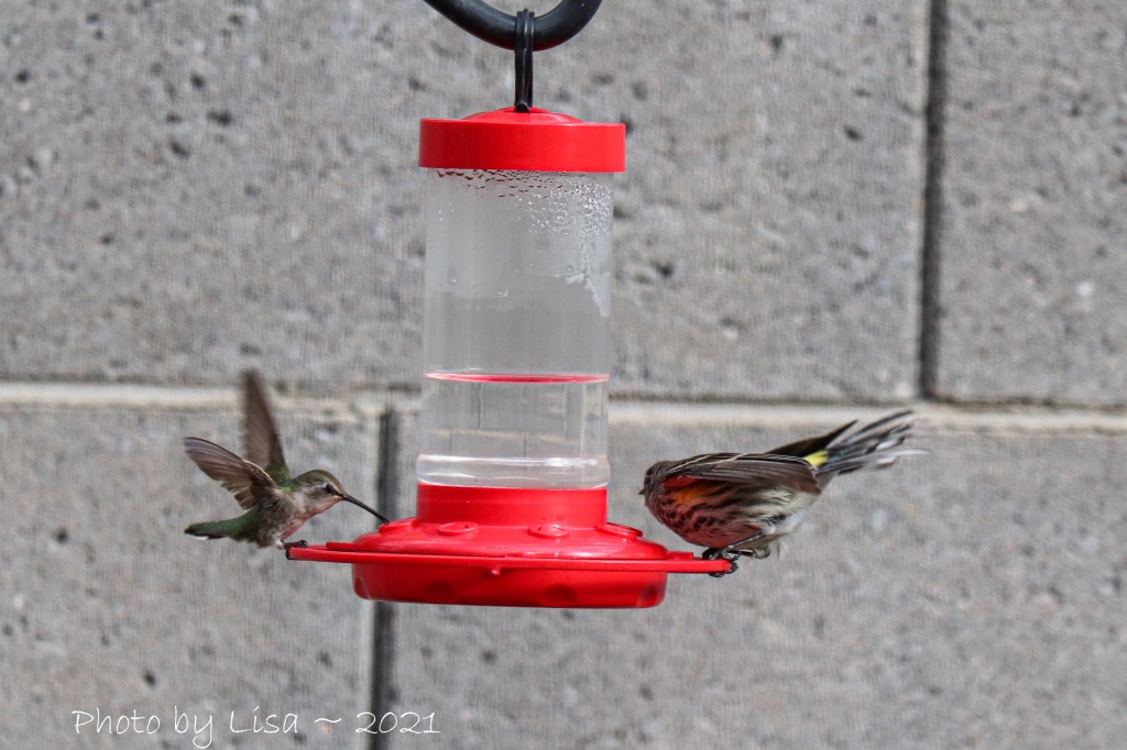 It is surprising that they all seem to get their time at the feeder. Hummingbirds still come. But I see more other birds than hummingbirds! And who knew that other birds would want sugar water!