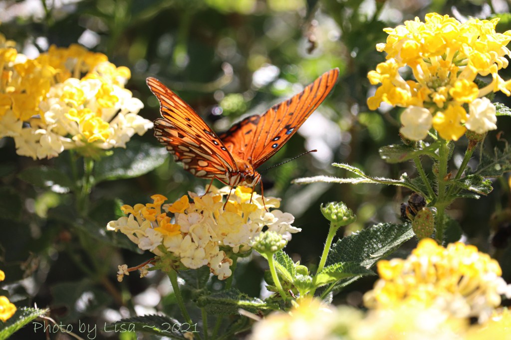 5. Beautiful, Lisa … and a touch of summer during winter. Don’t know I’ve ever seen a butterfly that yellow before. The first photo is my favorite.