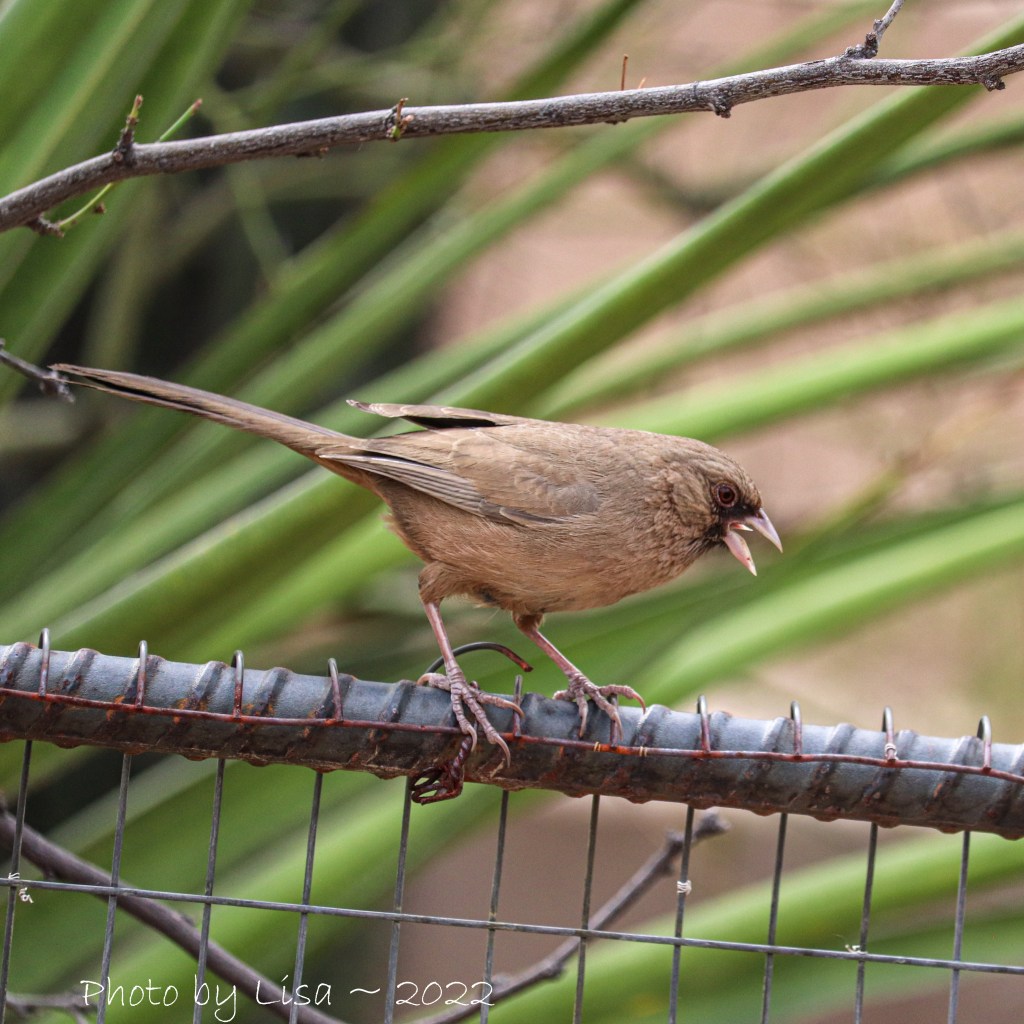 I think this little towhee was not happy that I interrupted his morning snack time on the ground below the fencing. He’s not really happy looking, do you think? 😊