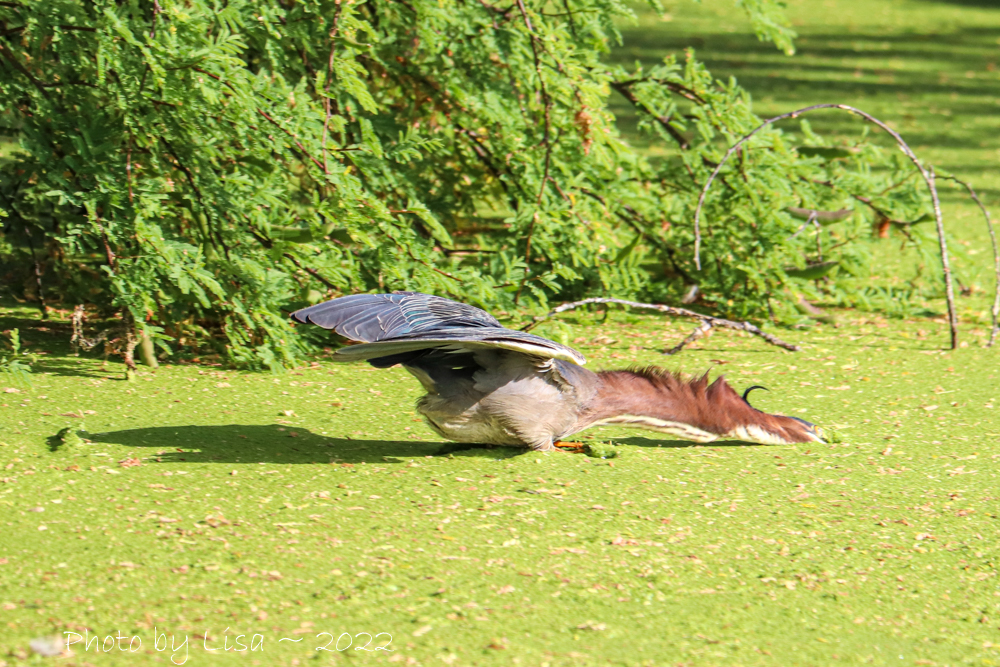 I enjoy the playfulness I experience in looking at these photos, especially the one of the heron with green swampy stuff covering their beak 🙂