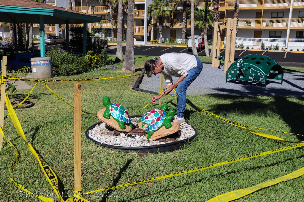 South Padre Island has a serious love for sea turtles. I read about the Sea Turtle Art Trail before I left. We started looking for the sea turtle sculptures on our second day on the island. I stopped and asked this nice lady if she had more information. She actually had a large map that she gave me (I had printed out a small one at home). The turtles below were receiving a fresh coat of paint but were not part of art trail. There was one nearby, however, that we easily located.