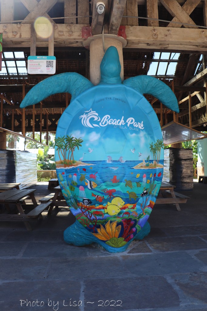 There were quite a few sandcastle art creations around the island. Several of them were on the beach in front of our hotel. Said to be semi-permanent, they were fun to look at, even if a bit wind-blown in parts. I thought this one especially cute 💗