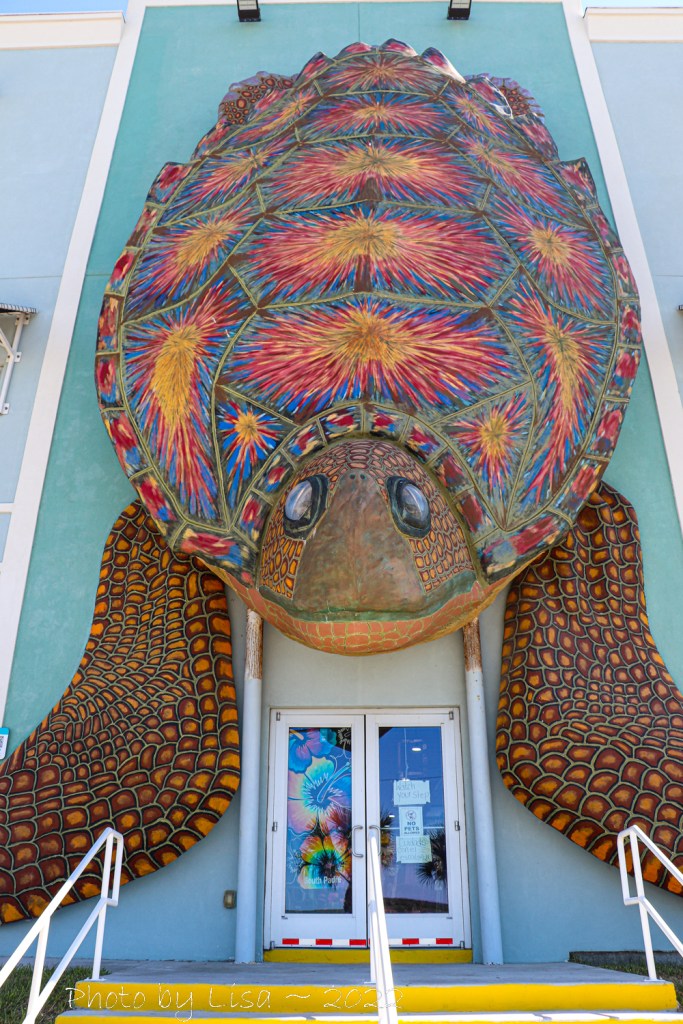 Below is a slide show of a few of the Sea Turtle Sculptures. We decided to try and find as many as we could. South Padre Island is not very large. When we had difficulty finding the one at Beach Park (currently closed for the season) we stopped in the Visitor’s Center nearby. They told us about the Sea Turtle Scavenger Hunt (I had read about it on one of the signs). If we found them all and posted at least on photo of us on social media, we got a gift if we returned. We also learned that we were free to wonder into Beach Park and find the sea turtle. They leave it open year around specifically for the scavenger hunters! Without too much difficulty we found each sea turtle, although two were removed and being refurbished. We posted our photos and went back to the Visitor’s Center to claim our prize, a “Sea Turtle Art Trail” t-shirt 😊