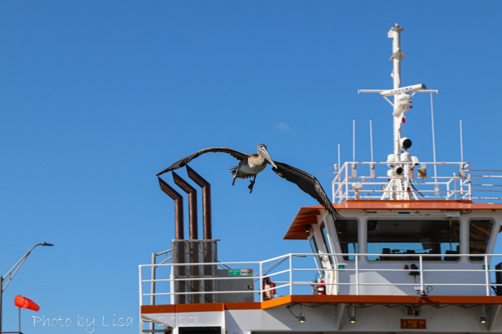 Below is a photo slideshow of the ferry experience and our friendly pelican.