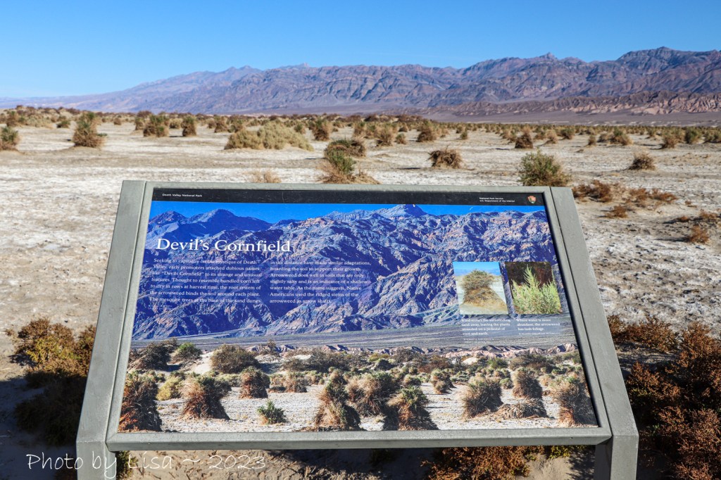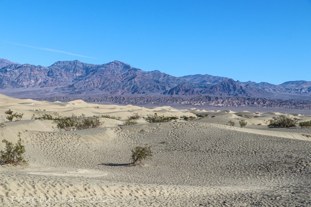 Our plan was to head to the northern part of the park, but due to flooding that road was closed. After a quick stop for a photo of Devil’s Cornfield, we headed to Mesquite Flat Sand Dunes.