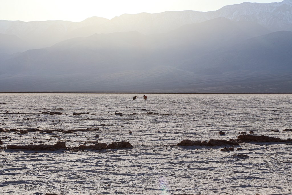 We walked out along the path into the vast salt flats. The Saltpan is about 95% table salt and covers two hundred square miles. The further we walked the more desolate and surreal it felt. We arrived a bit before sunset and hung around to experience the sun setting behind the mountains. The really crazy thing is the perspective we had from below didn’t even begin to show the vast magnitude of the salt valley. In my next post I will show the views from Dante’s View, a point directly above Badwater Basin which gives a whole different perspective you simply can’t experience from below.