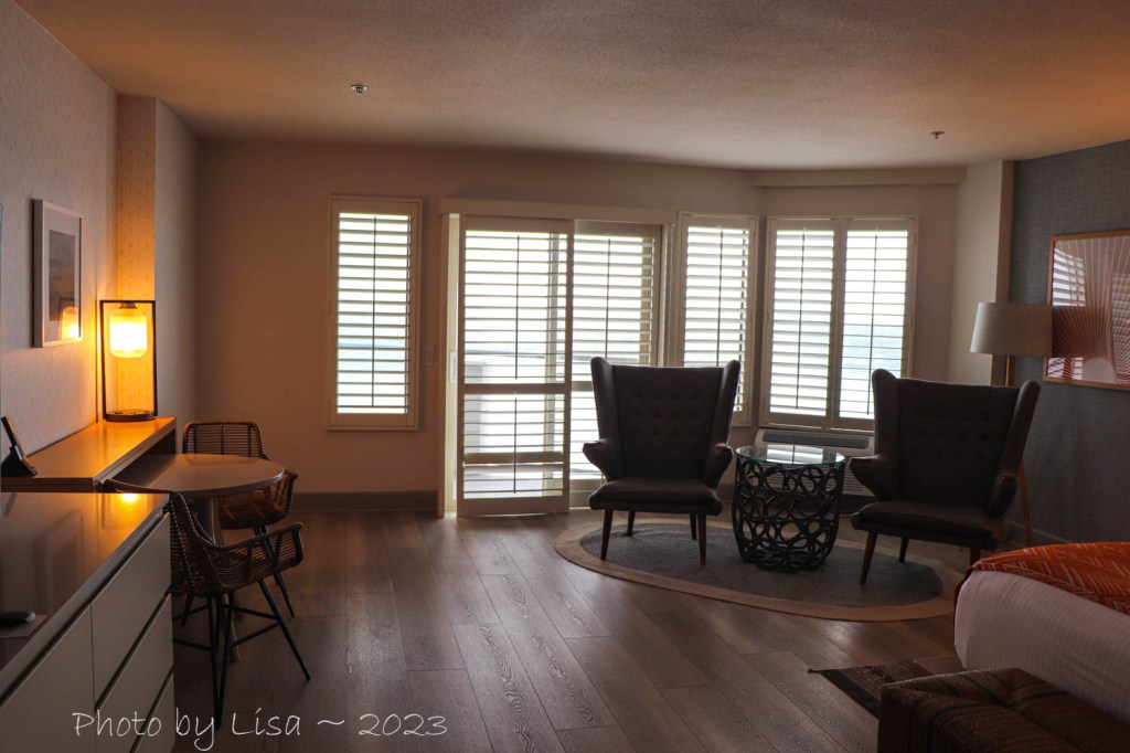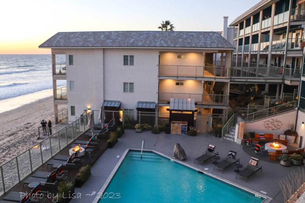 The final destination on my 60th birthday, road trip celebration was Carlsbad, California. And in keeping with the focus on unique hotel accommodations, I choose the only hotel on the beach in Carlsbad, Beach Terrace. It did not disappoint. The building used to be apartments, and the rooms were huge! The room was beautiful, as was the view.
