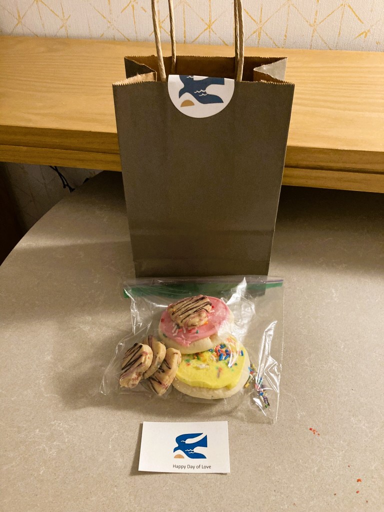 The hotel has a kitchen and they provided Valentines Day cookies upon our arrival.