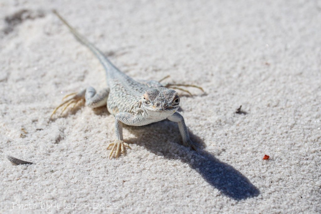 We visited White Sands this past spring on our way home from our winter in south Texas. We didn’t see any critters, so this little lizard was a lucky catch for you. It truly is a mesmerizing place.