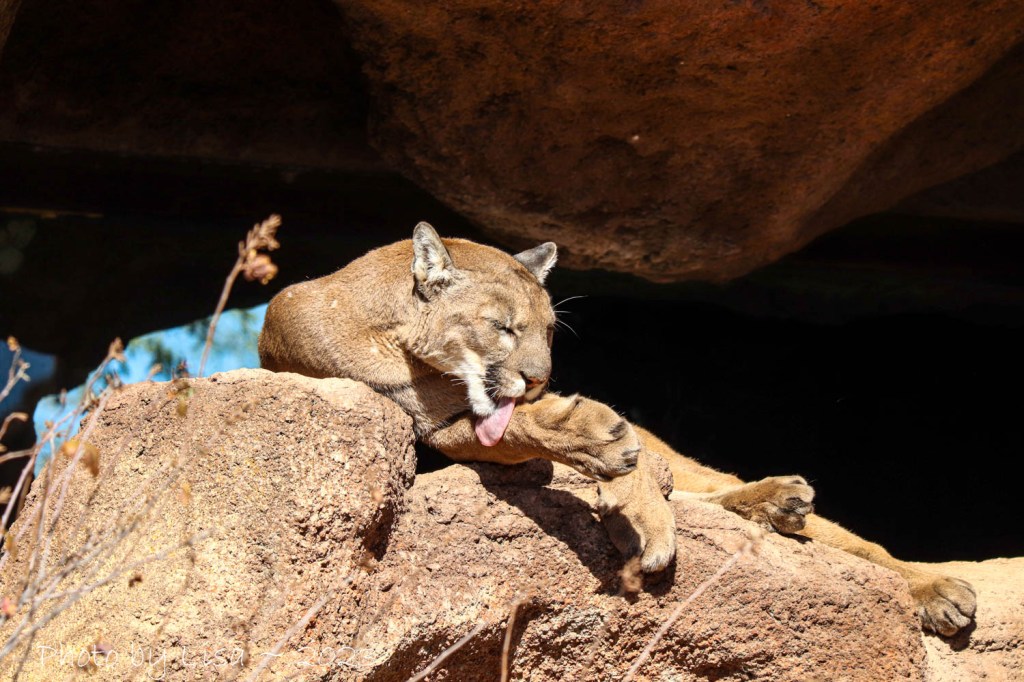 My favorite park of the morning was to see the Cruz, the mountain lion, sunning himself on his favorite rock.