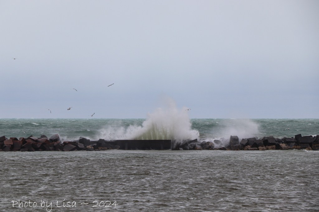 I’m sure there is so much that we missed. The morning after we arrived the sky was dark with clouds, and the weather was very cool. Our first stop was Portage Lakefront and Riverwalk. We really did try to tackle this easy walk. However, in our defense, it was windy and rainy. At 11:14 am the weather app said it was 39 degrees and “felt like” 31 degrees. We both agreed it felt like 31 degrees!