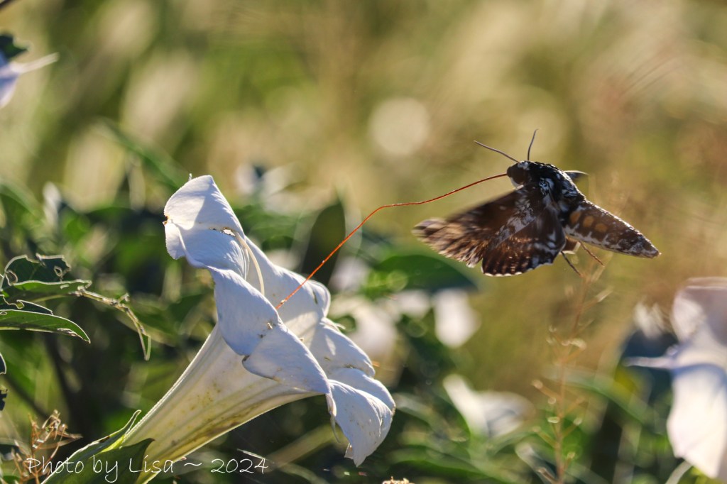 I’ve been watching for the White-lined Sphinx month and was surprised to discover this guy a few days ago. I think I have seen one a couple of years ago on the outside of our house. But I have only seen the White-lined on the flowers.