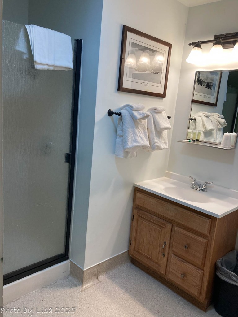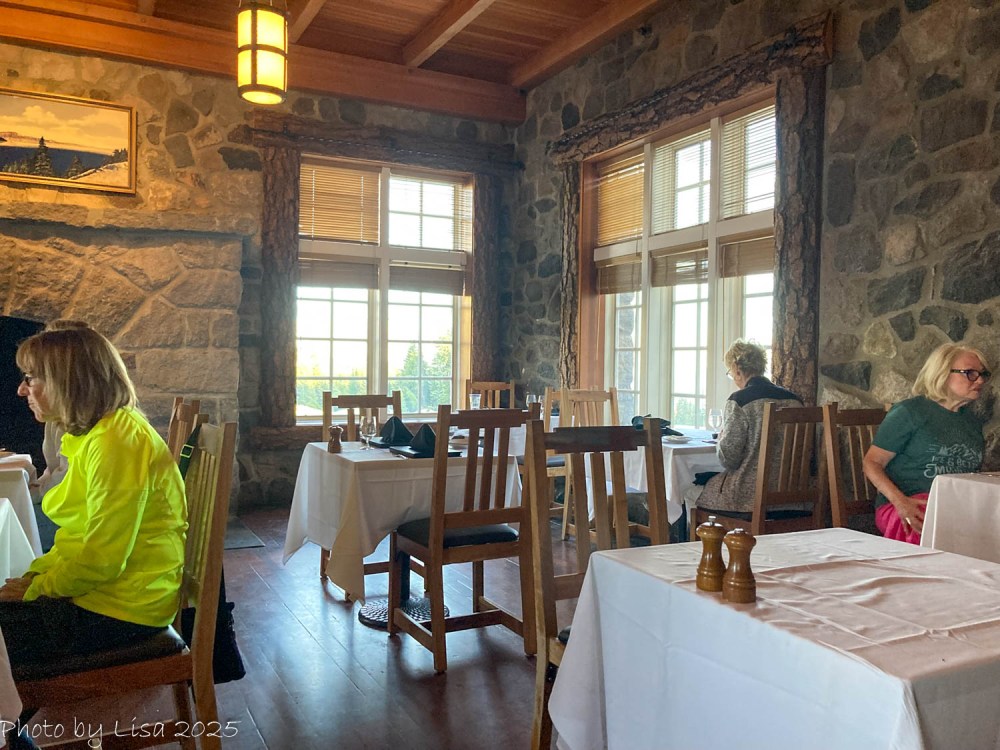 Day two we slept in, then spent the day walking as much as we could around the lake, shopping, and visiting the visitor’s center. We ate at the restaurant by the cabins, which was more casual, less expensive and also very good.